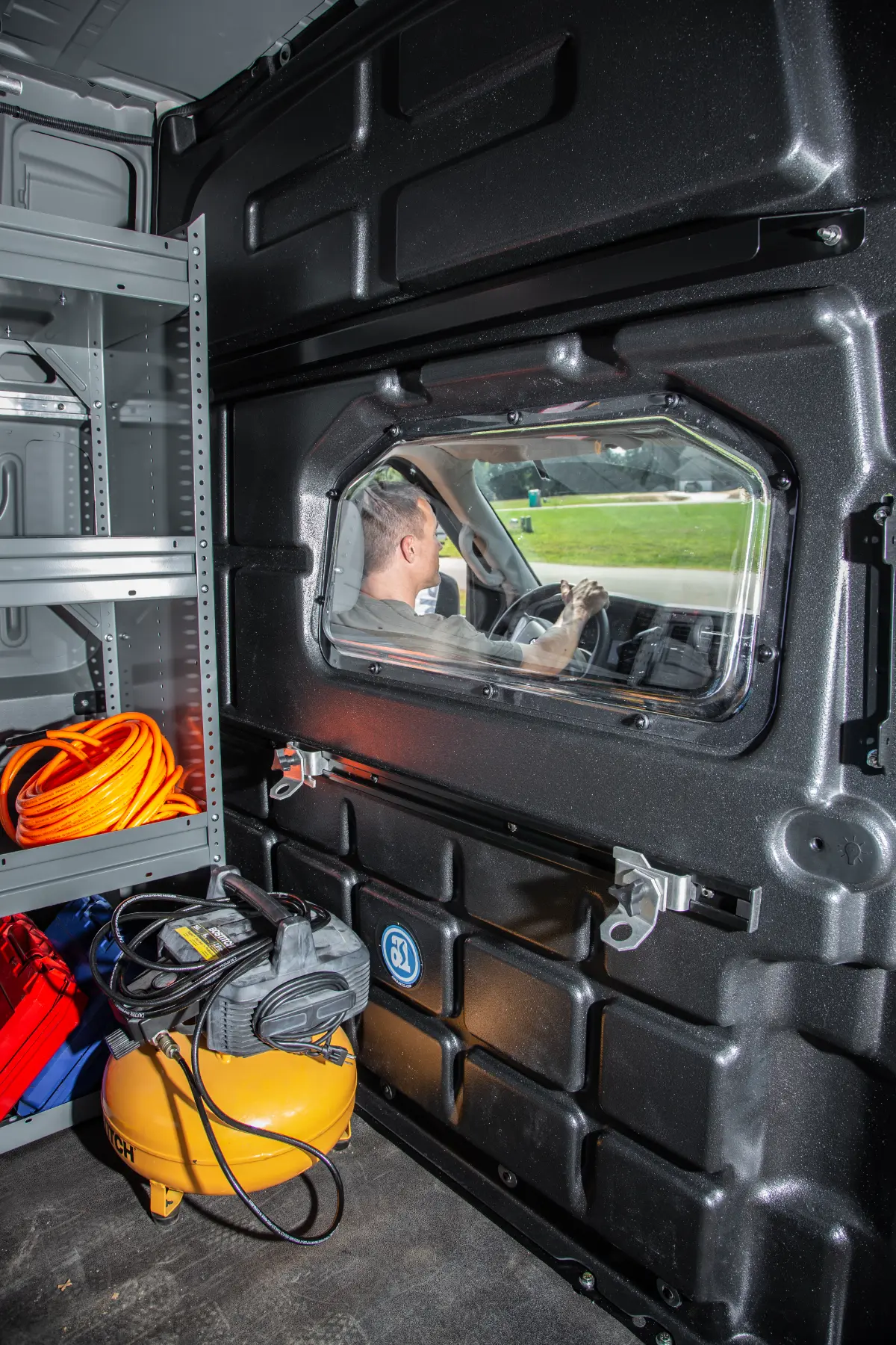 If your van has rear or side windows, this clear view through the partition enhances situational awareness and makes maneuvering, parking, and backing up safer and easier. It’s the perfect blend of protection and practicality—keeping you secure while maintaining full use of your van’s natural sightlines.