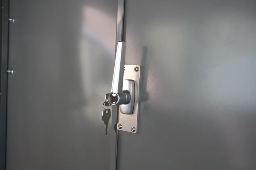 The locking handle adds crucial safety and security by keeping the door firmly closed during transit, preventing accidental openings and reducing noise. It helps protect the driver from shifting cargo, restricts unauthorized access to the cargo area, and provides a cleaner, more professional look—making it a smart addition to this product offering.