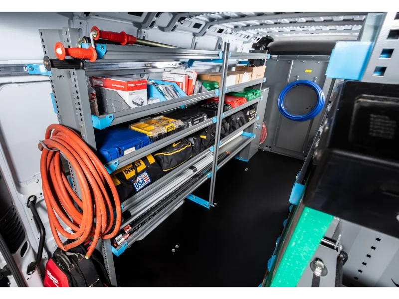 Next-Gen Shelving is built tough and built smart for the work vehicles of today—so you can pack more tools, parts, and gear without the clutter. Our High Roof 5-Shelf Units are fully customizable with multiple heights, depths, and lengths (24” to 144”), and ready to lock in with our Next-Gen Accessories.