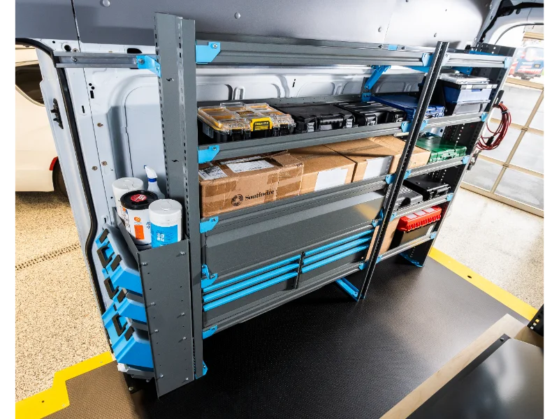 Customize your shelving to your cargo with our lineup of drawer units, door kits, bins, dividers and industry accessories like tank racks, wire holders, parts cases, organizers, work benches and modules. Your local upfit expert can customize your perfect upfit.