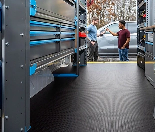 Adrian’s Next-Gen Floors are built to hold up your van’s organization system and protect your van from wear and tear.