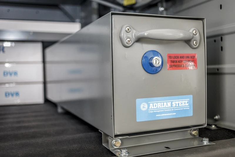 Adrian Steel pull-out floor drawers keep your tools organized, secure, and easy to access. With retention to prevent opening during transit and locking latches for added security, they come in short and tall sizes to fit your cargo.