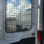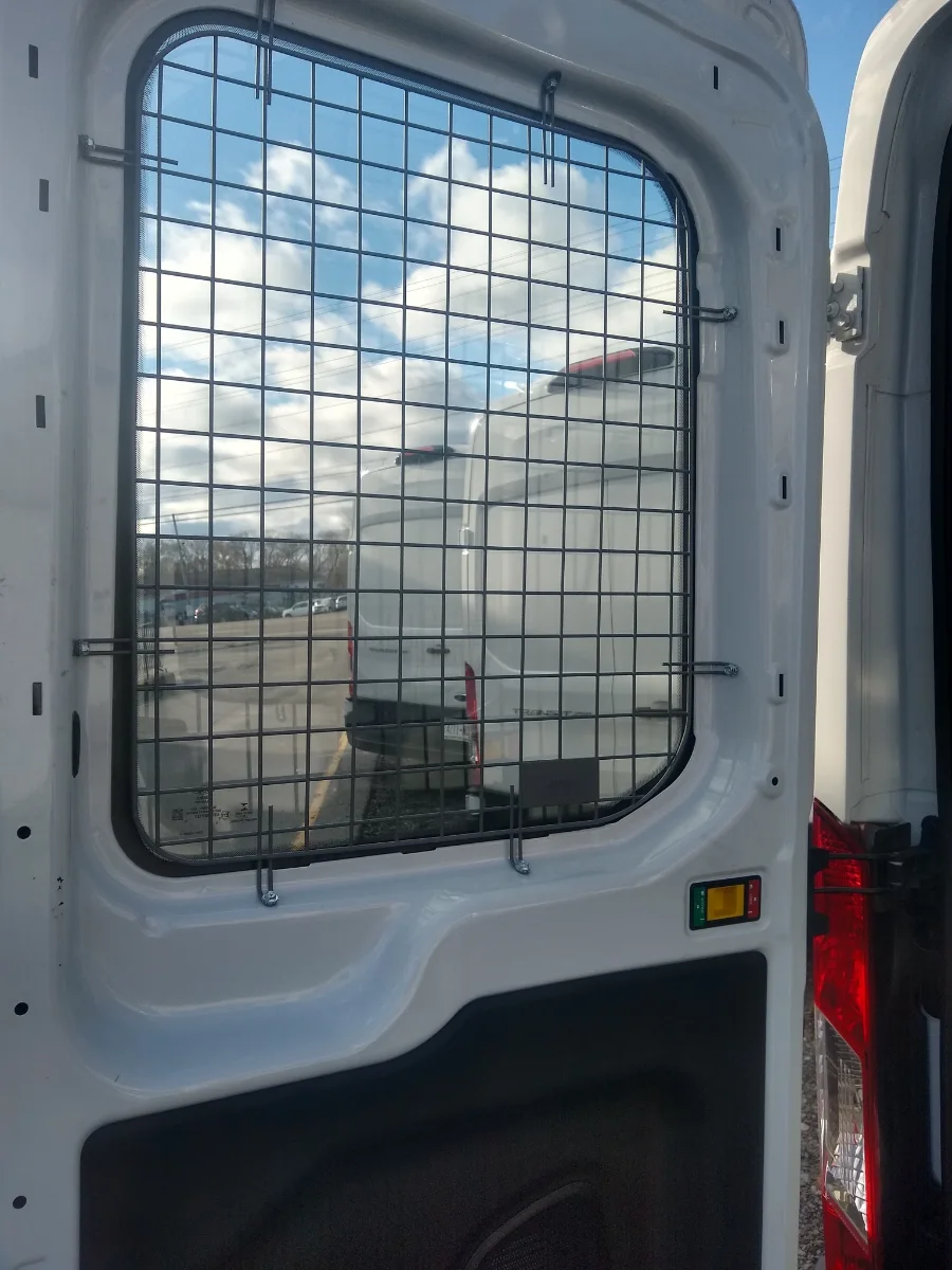 A rear door window screen in a commercial vehicle adds durable protection to one of the most vulnerable entry points for smash and grab incidents. Its open-grid design maintains visibility while creating a secure barrier between the glass and the cargo area.