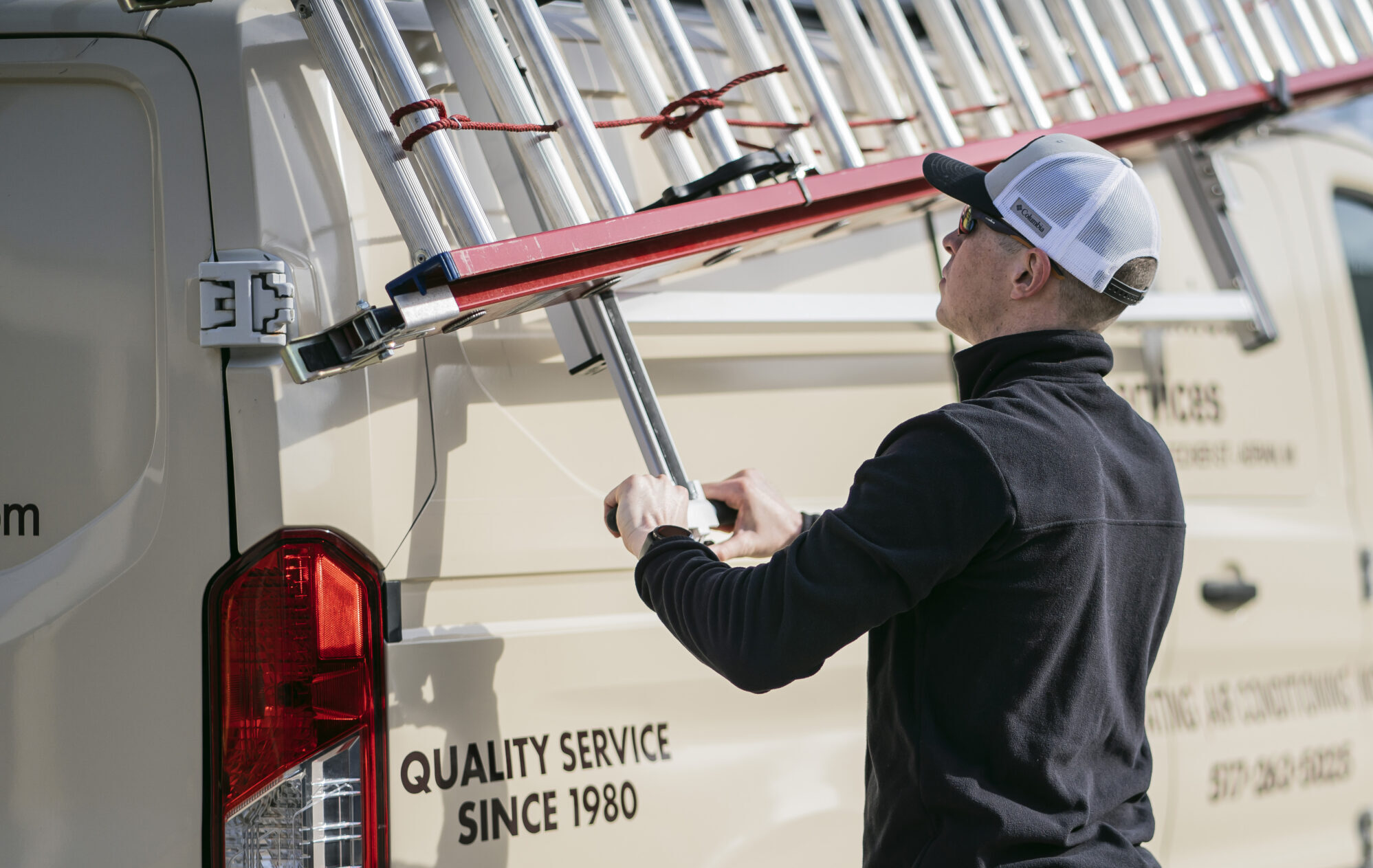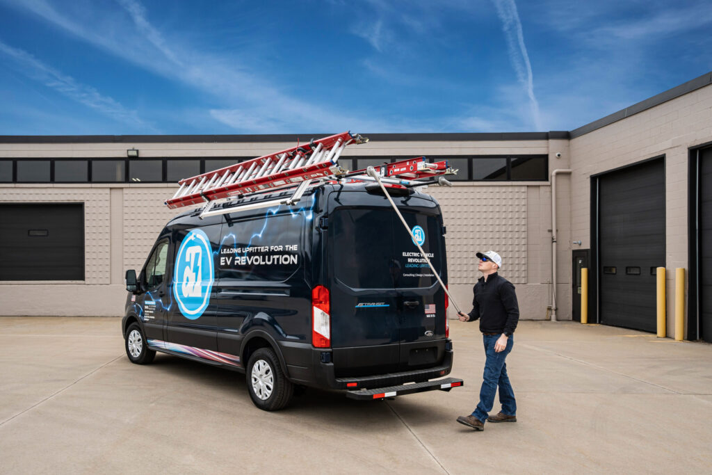 When only one technician is working, a drop-down system allows them to safely load/unload without assistance, especially helpful on high-roof cargo vans.