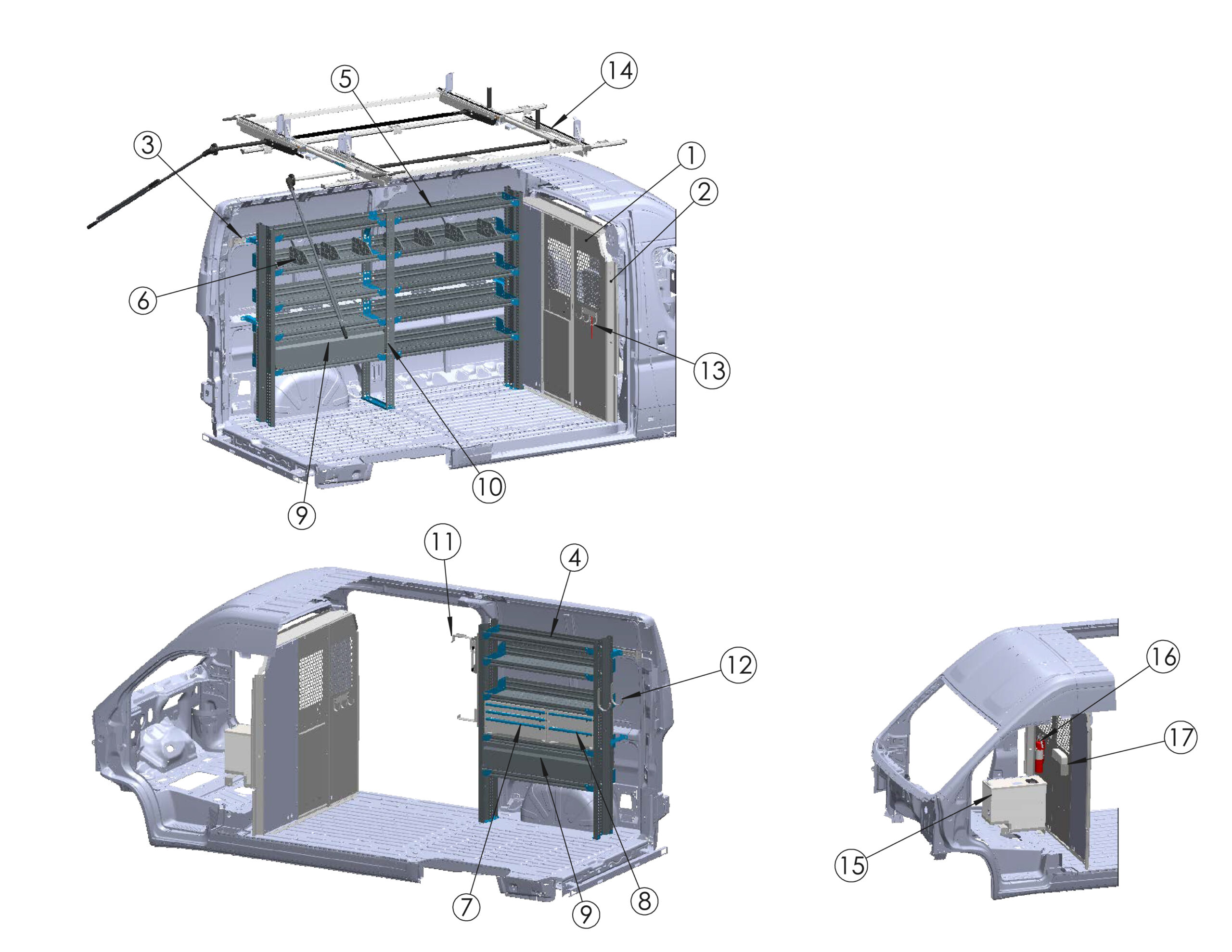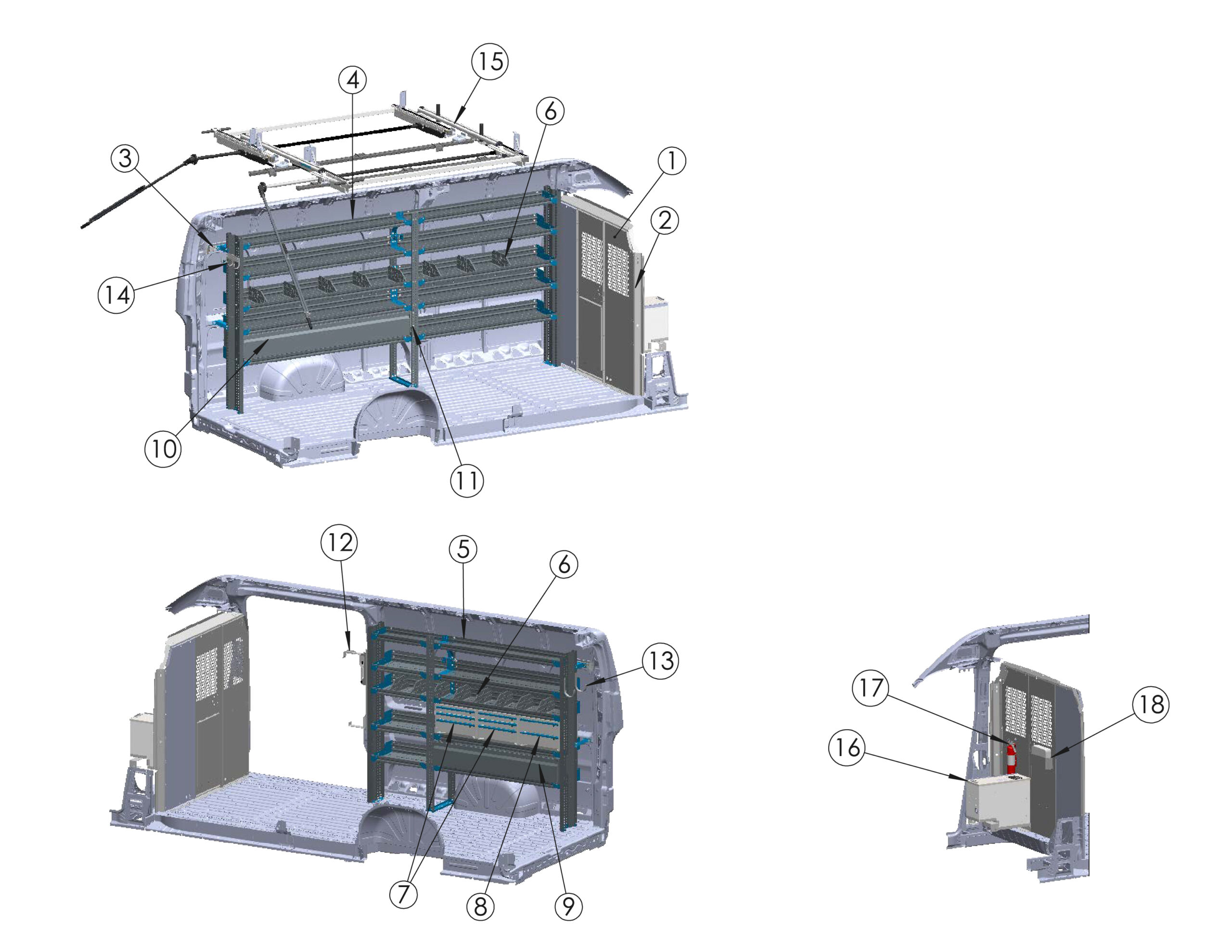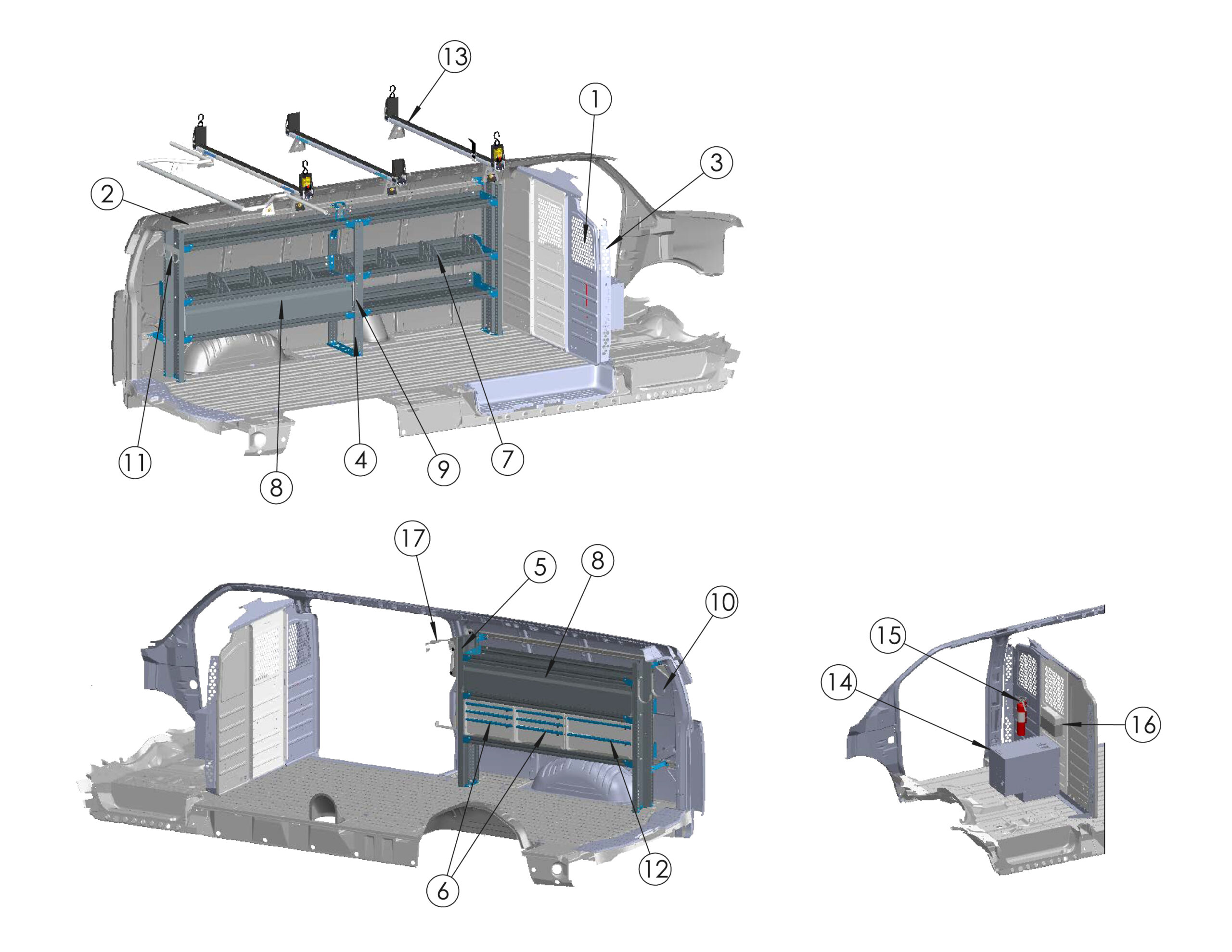 | 13 | 3-Bar Utility Rack w/ (6)6" Uprights & Rear Roller (Excludes High Roof Extended) - No Mounts | 3B6RRFTW | x1 |