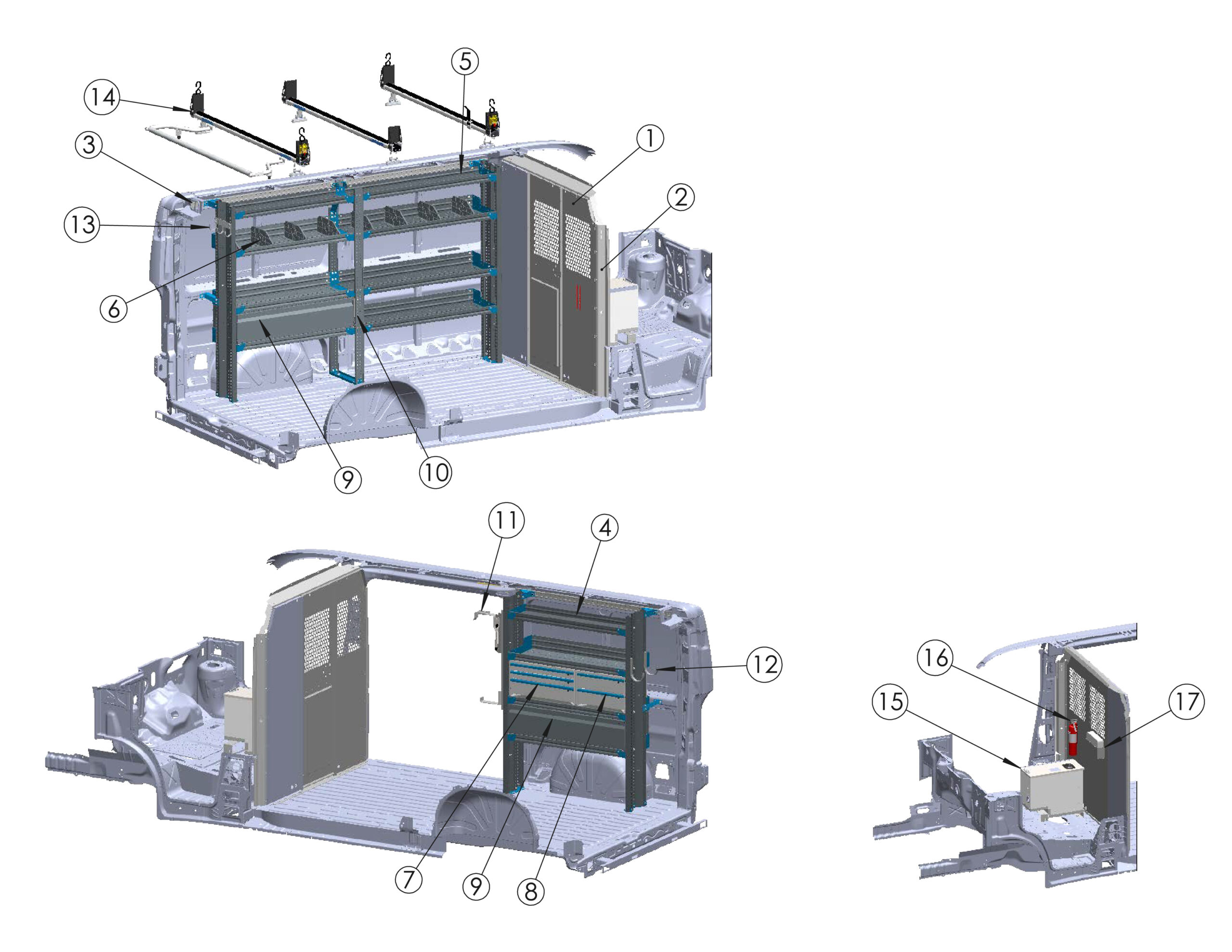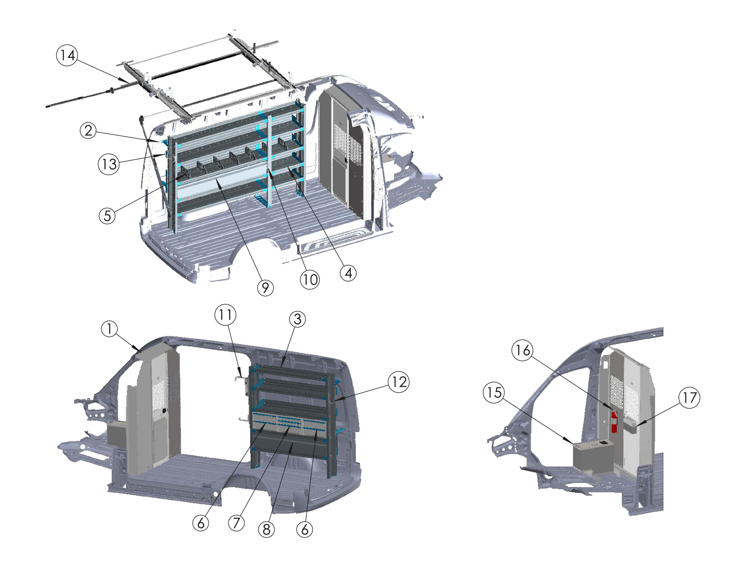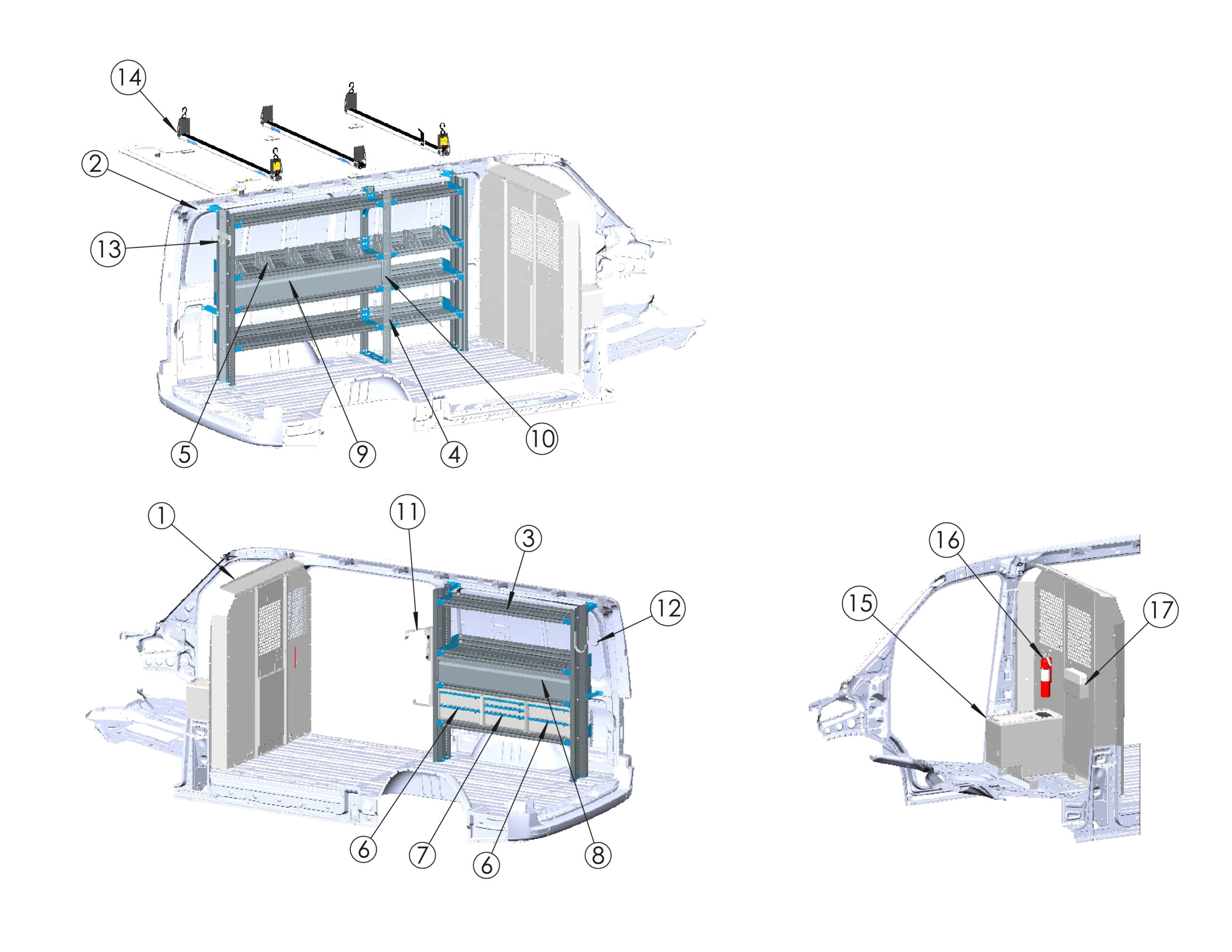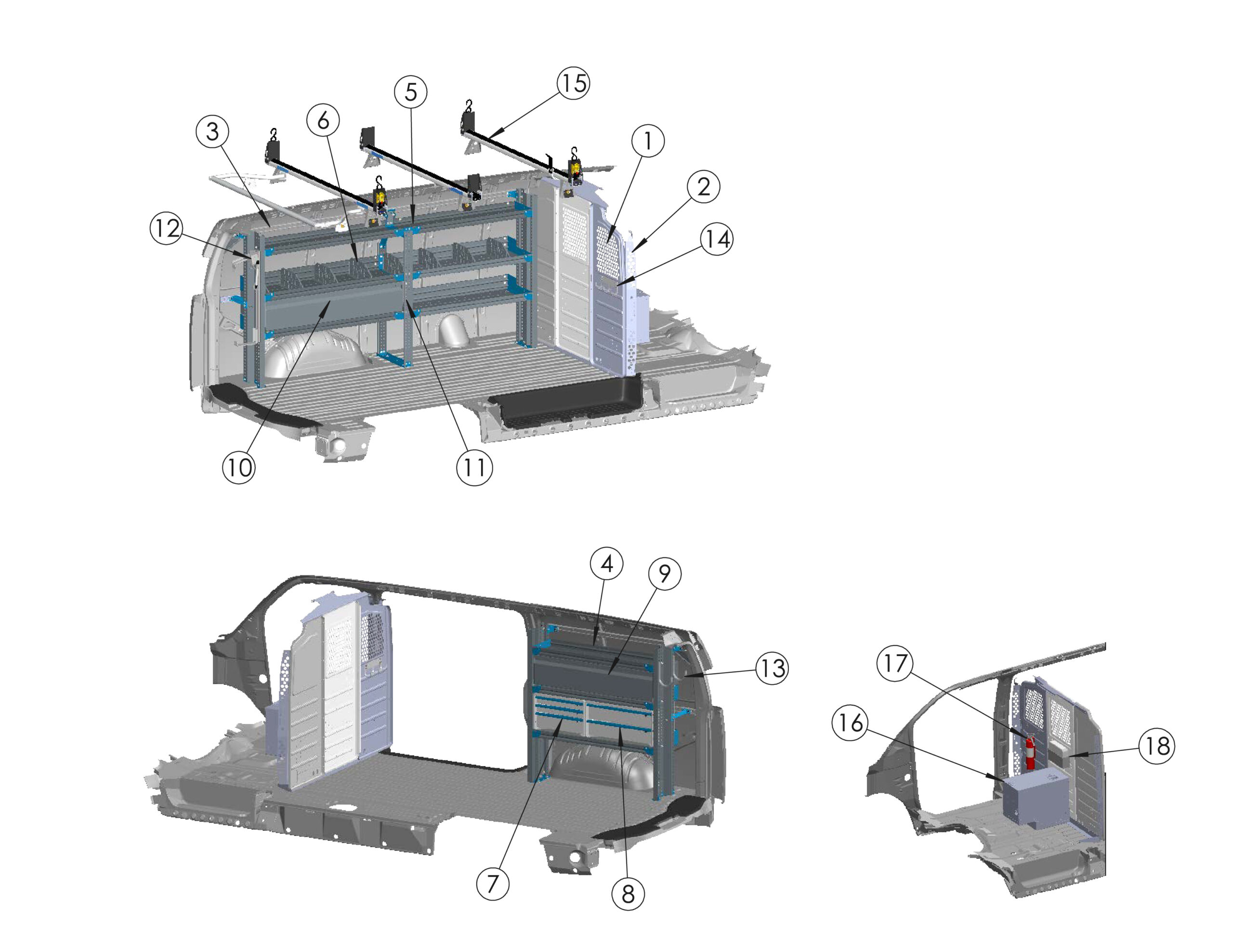| 13 | 3-Bar Utility Rack w/ (6)6" Uprights & Rear Roller (Excludes High Roof Extended) - No Mounts | 3B6RRFTW | x1 |