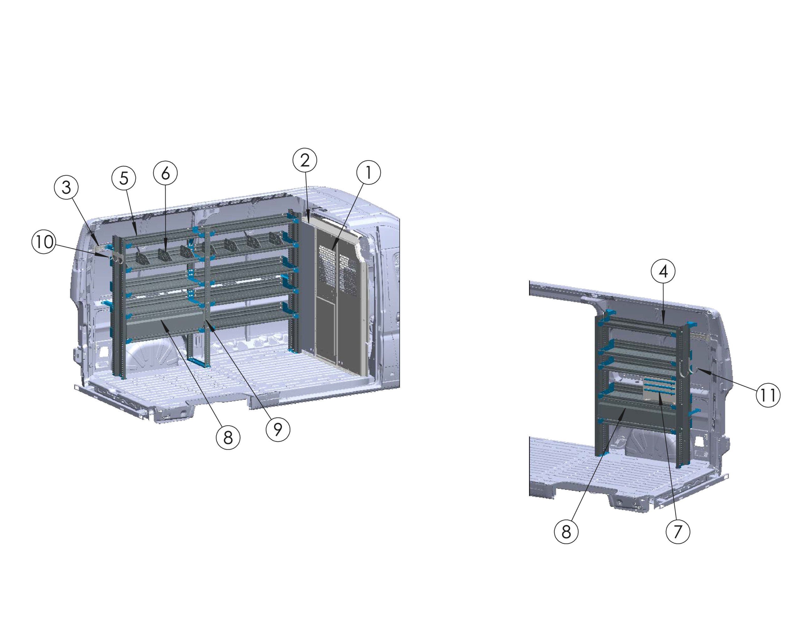 | 11 | 14" Shelf Divider, 8-Pack | DIVK148 | x1 |
