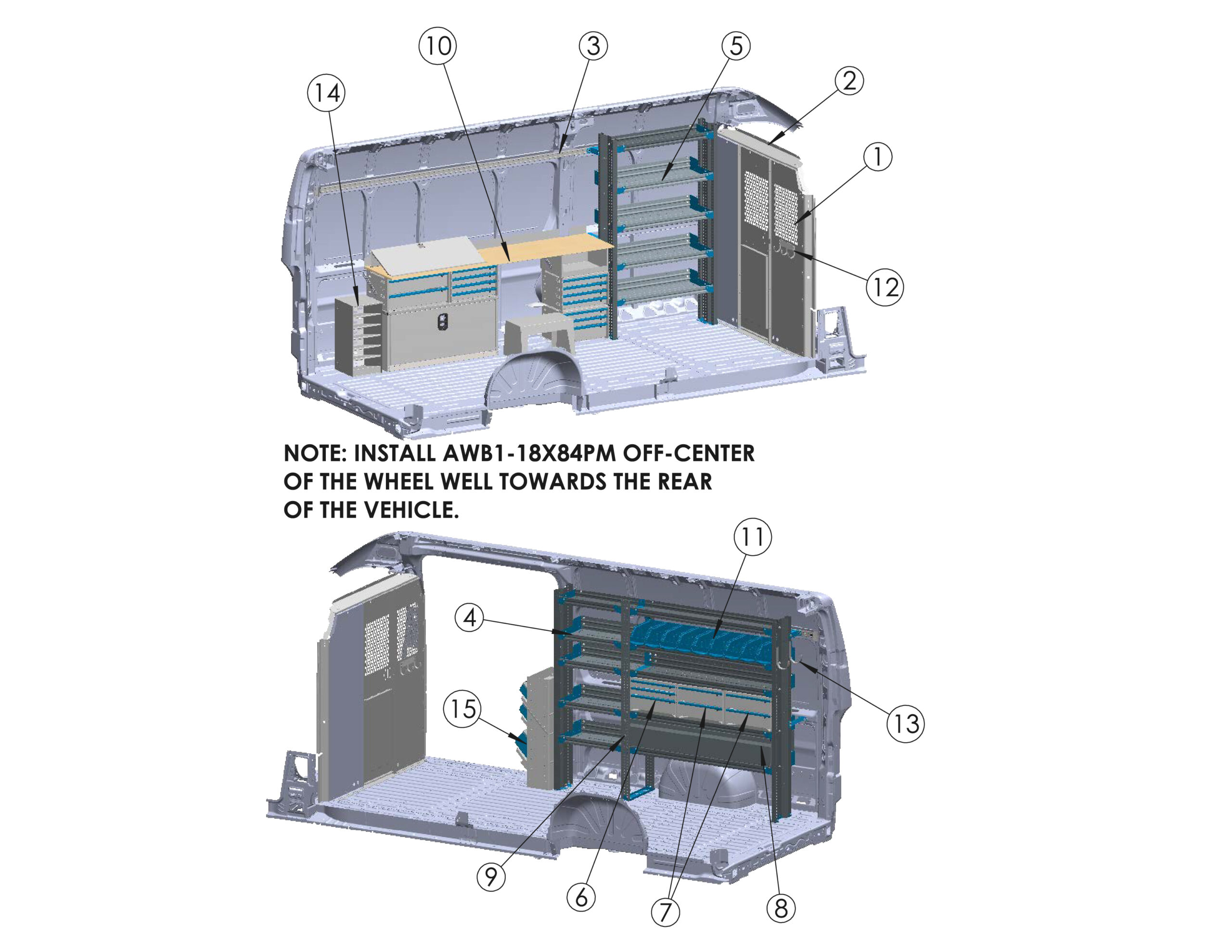 | 14 | Work Bench Module, 18"D x 84"W x 25"H | AWB1-18X84 | x1 |