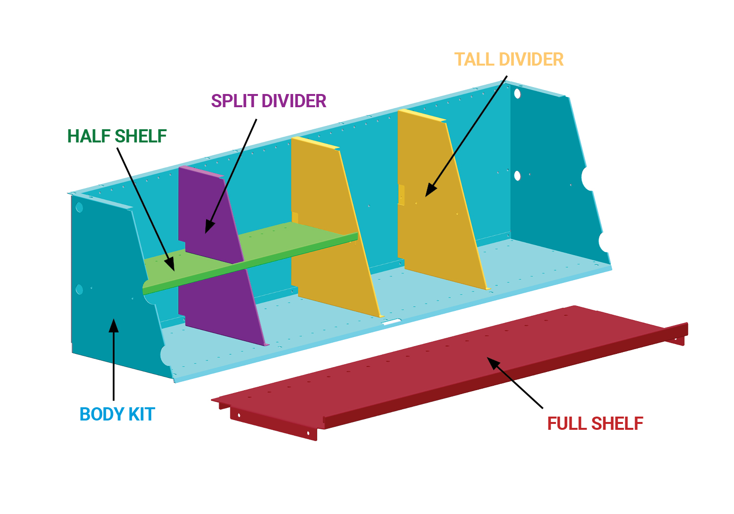| Body Kit | Full Shelf Kit* | Half Shelf Kit~ | ||||||||