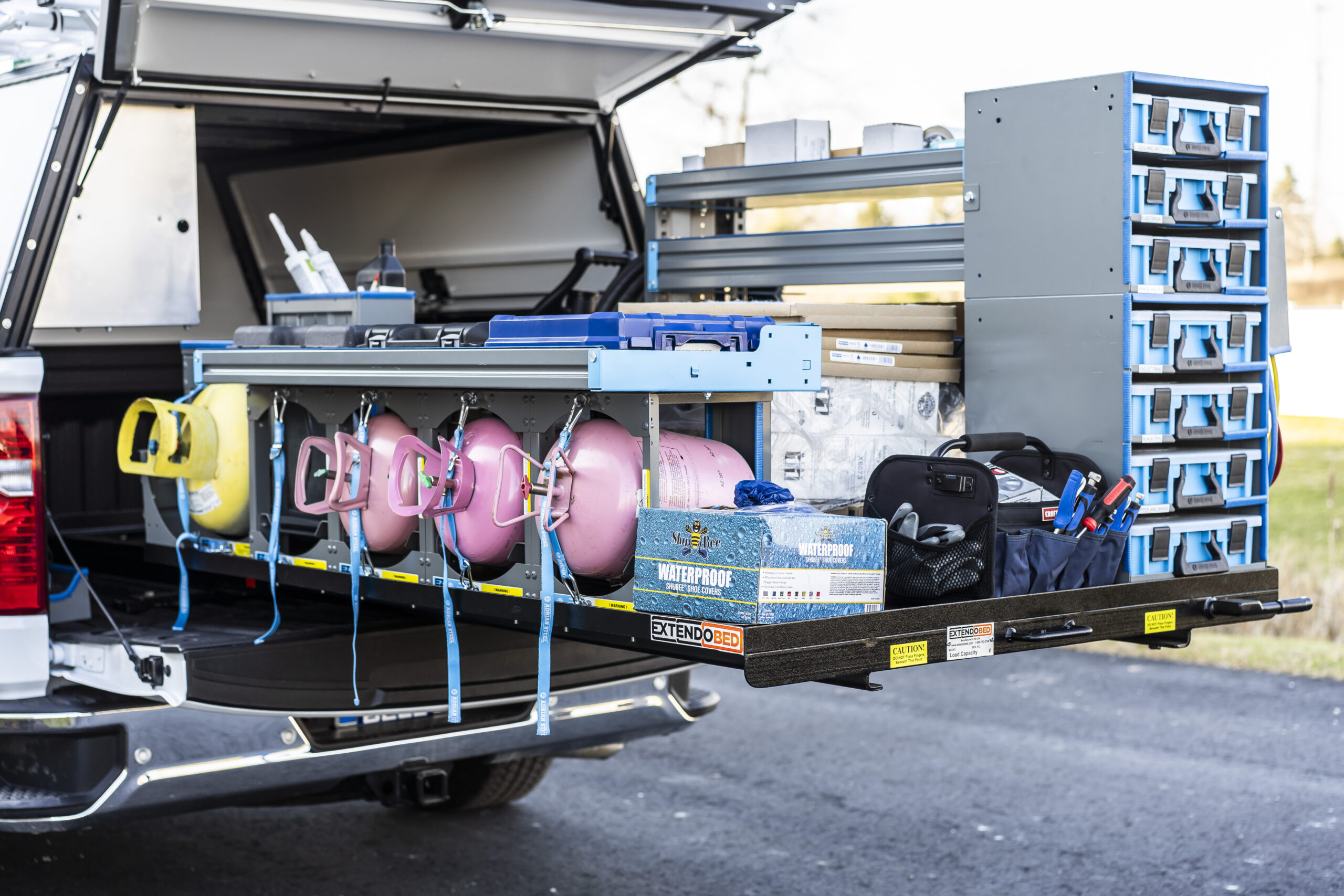 Tanks are heavy and reaching in and out of the truck frequently to access your tanks takes a toll on your body. Our tank storage solutions make your job easier by placing your tanks near the rear of the bed or along the edge of a bed slide for easy access.