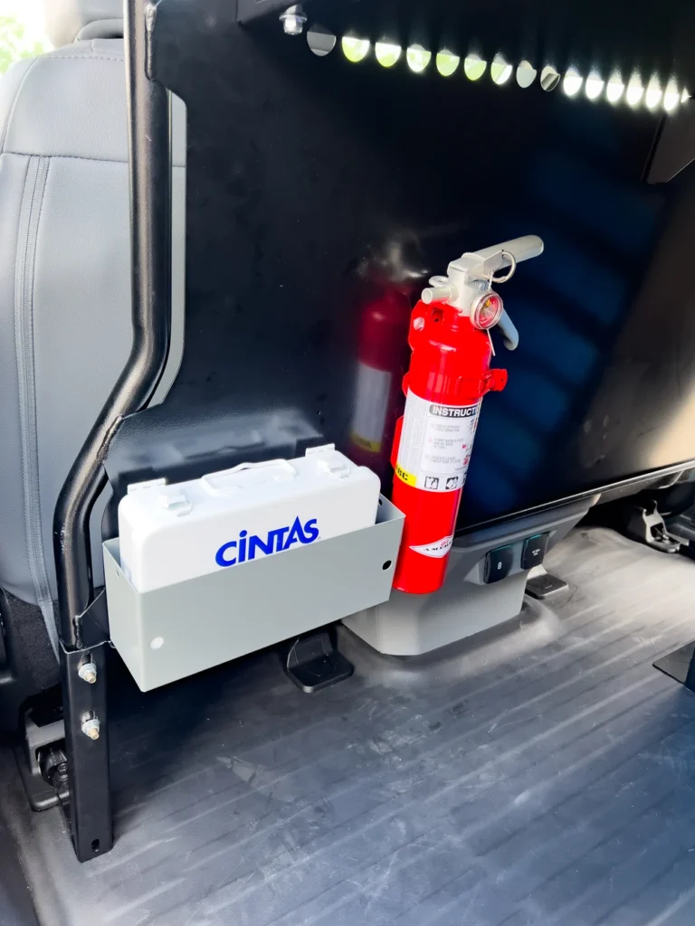 A vehicle fire extinguisher is a critical safety component designed to provide fast, effective response to small fires in or around a vehicle. Ideal for commercial, fleet, and upfit applications, it helps protect both occupants and equipment in the event of an emergency. Securely mounted and easily accessible, a properly rated extinguisher ensures your vehicle is prepared for unexpected fire hazards, enhancing overall safety and regulatory compliance on the road or job site.