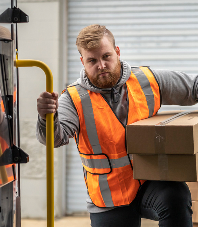 We took our Heavy-Duty Series of shelving to the next level by expanding the shelf depth without sacrificing aisle space. You can safely and securely store wire and cable boxes, commercial storage cases, and more. We have also eliminated wasted space around the wheel well with an 8” shelf option keeping loose pipes and fittings from rolling around the van floor. Our revolutionary under-the-shelf conduit prevents slips, trips, and falls by securely storing your conduit under the shelves!