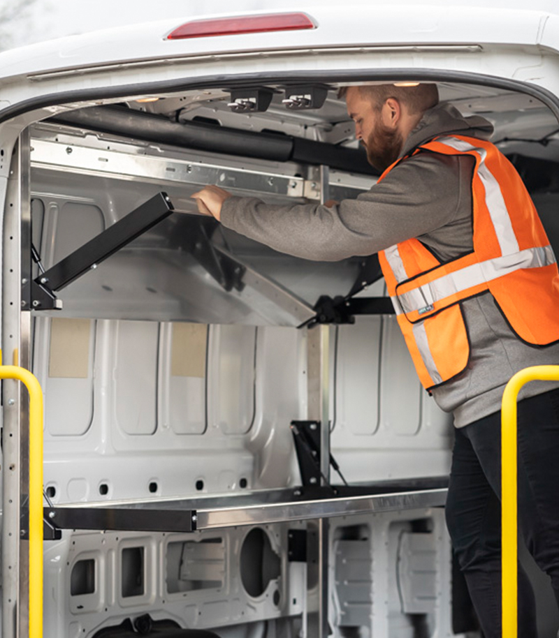 All-new, patent-pending, Zero-Drill Floor plates will allow shelves to be mounted into the vehicle without drilling into the floor. We also modified our installation approach for partitions to avoid drilling into the floor. Adrian Steel has both the knowledge and solutions to help customers get the most out of their electric vehicles.