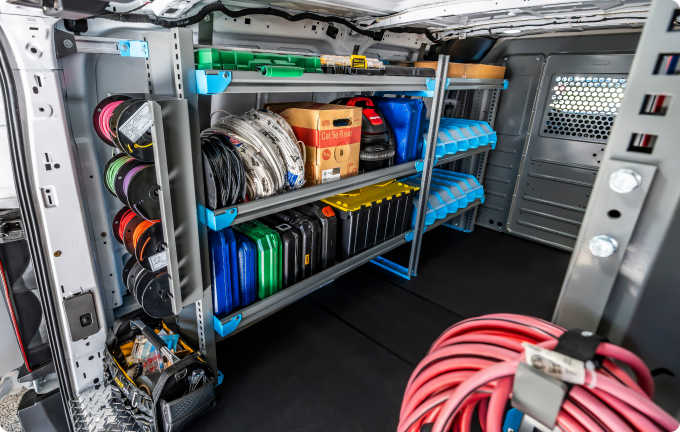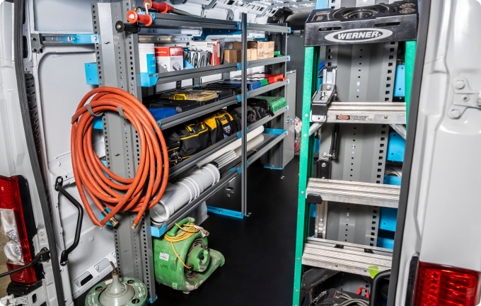 NEXT GEN SHELVING BY ADRIAN IS THE WORLD’S MOST VERSATILE SHELVING LINE SO YOUR VEHICLE UPFIT SUPPORTS YOUR BUSINESS